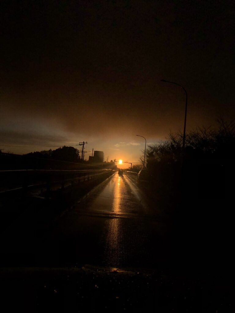 その帰り道、雲ひとつい青空の天気だったにもかかわらず、あたりが真っ暗になったかと思うと、スコールのような大雨が降り出した。